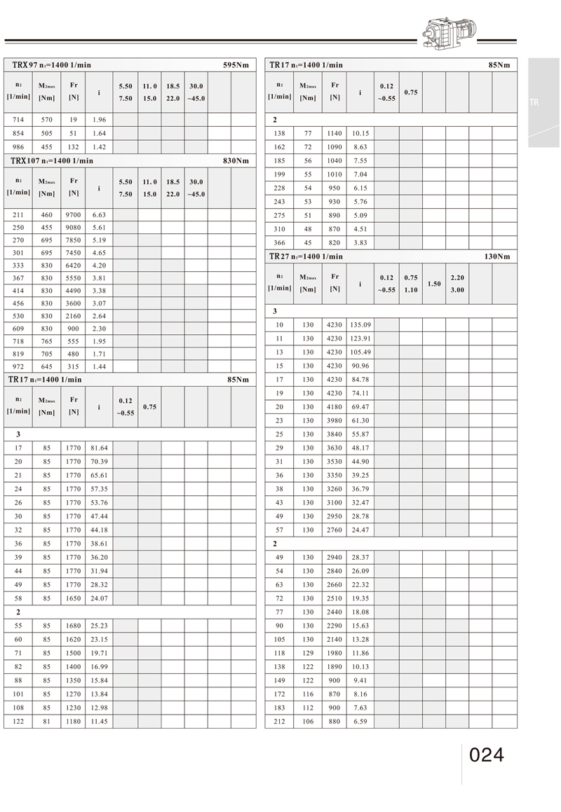 速比范圍:R基本型3.33~289.74,RX型1.3~8.65,R/R組合型可達到27001