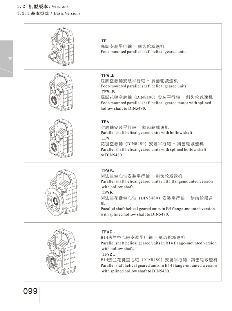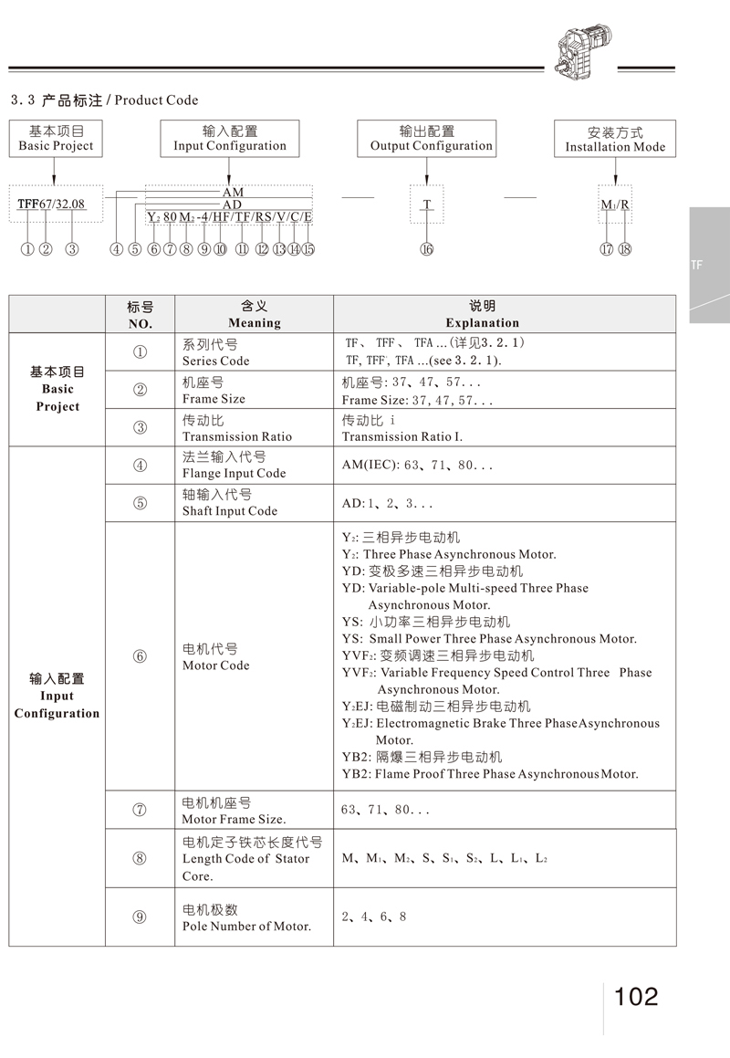 F-軸伸式、底腳安裝 FF-軸伸式、法蘭安接 S-表示軸輸入 FA-軸裝式聯(lián)接