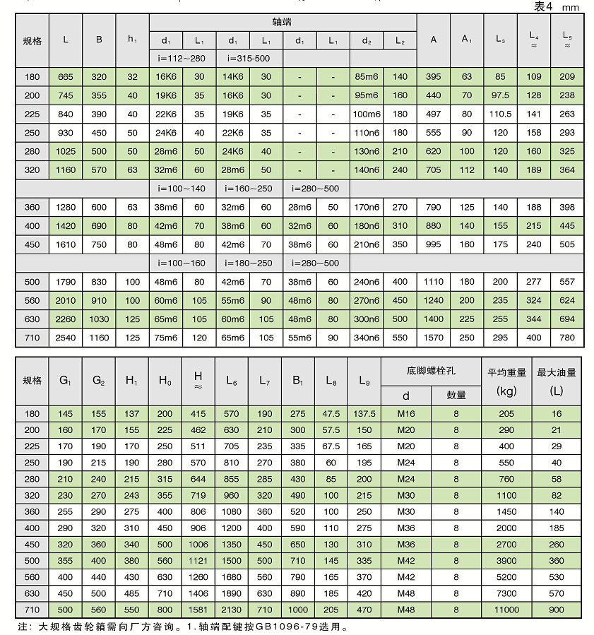 3.2減速器規格:180、200、225、250、280、320、360、450、500、560、630、710、800